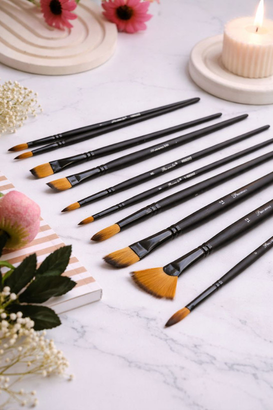 ۱۲ عدد قلموی متنوع در سایزهای مختلف✅️مناسب نقاشی با آبرنگ و رنگ اکریلیک✅️نگهدارنده قوی آلومینیومی ضد زنگ و ضد رنگ پذیری✅️موهای نرم مصنوعی بدون ریزش با جذب رنگ عالی و انتقال راحت رنگ بروی بوم یا مقوا✅️دسته چوبی خوش دست در سایز متوسط✅️مناسب استفاده مبتدی تا حرفه ای