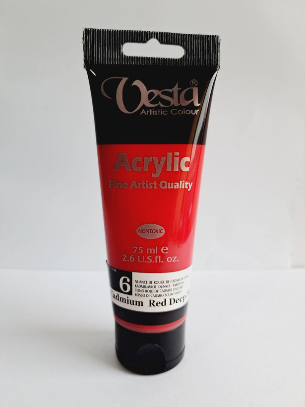 رنگ اکریلیک قرمز وستا مدل 6 Cadmium Red Deep Hue حجم 75 میلی لیتر