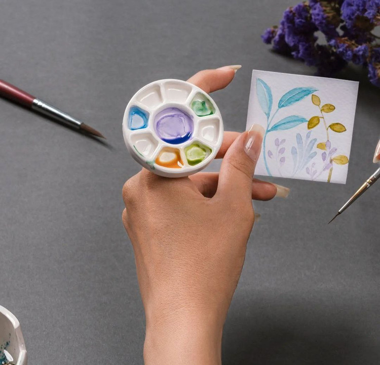 پالت انگشتری سرامیکی دایره ای ۹خانه(پالت انگشتی)