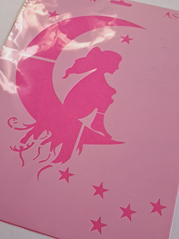 شابلون استنسیل هنری ماه خاتون (ماه،دختر،ستاره) کد 584 سایز 26 در 36 (شابلون نقاشی,شابلون طراحی)