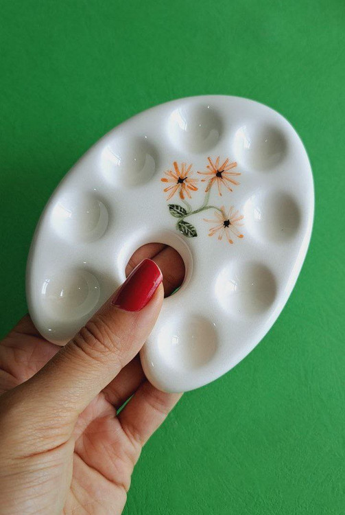 پالت سرامیکی تخم مرغی متوسط گل نارنجی
